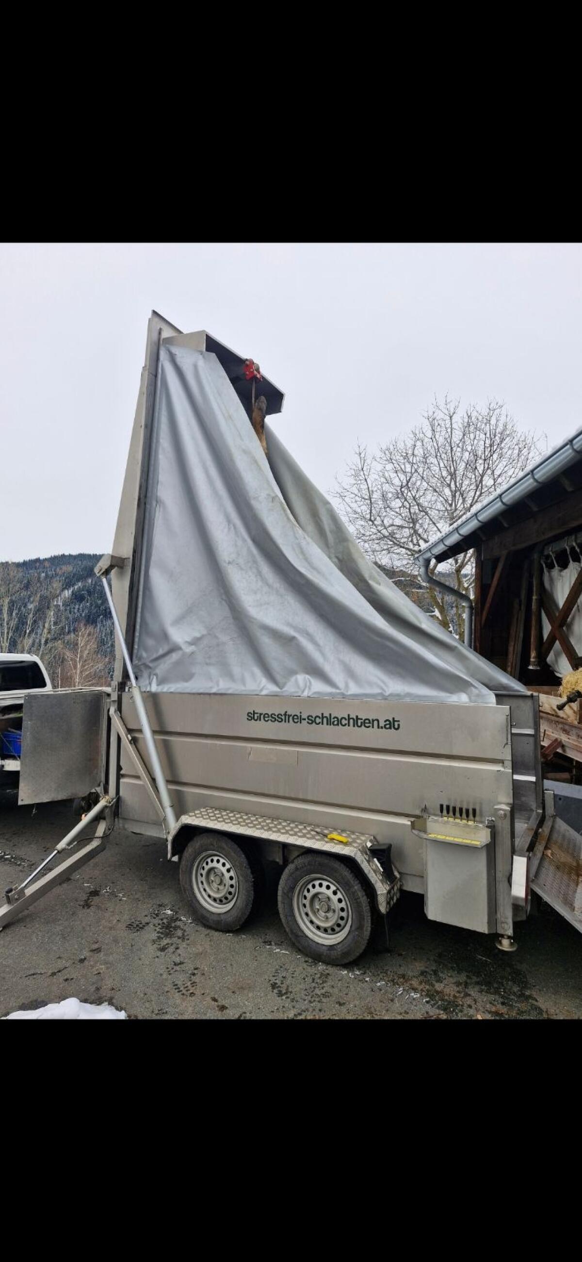 PKW-Anhänger für teilmobile Schlachtung zum Transport zum Schlachtbetrieb, mit Benzinaggregat und hydr. Winde, Neupreis € 39.000, -. Bremsseile neu. Pickerl gültig. A