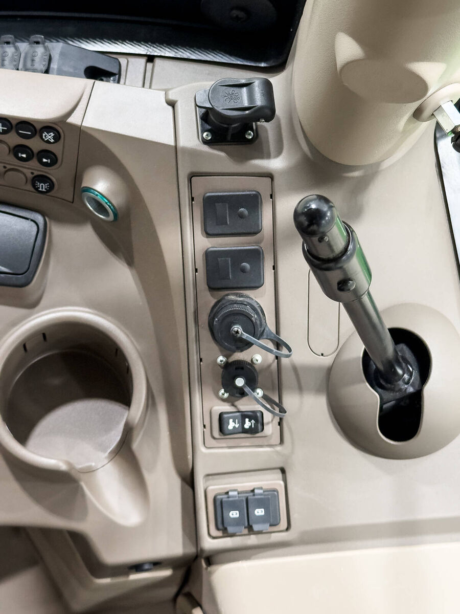 - Premium luftgefederter Grammer MSG 97AL Fahrersitz mit Kopfstütze, Anwesenheitssensorschalter, Niederfrequenzfederung, automatischer Gewichtsanpassung, Sitzplattenverstelloption, Quer- und Längsverstelloption, seitlicher Federung, Längsstoßdämpfung, luftgefederter Lendenwirbelstütze, Kohlefaserlage und verlängerte Rückenlehne