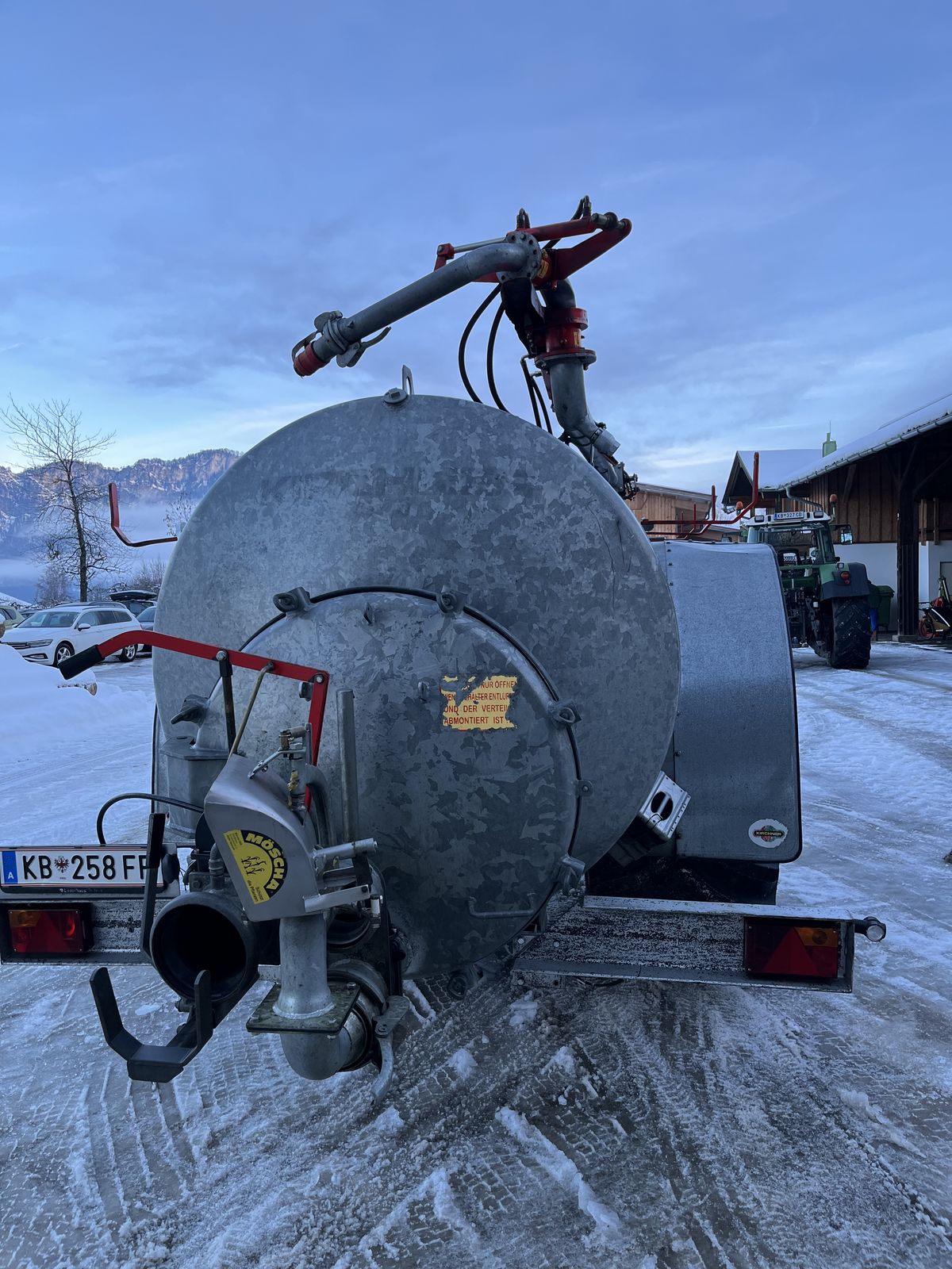 Top gepflegtes und technisch einwandfrei funktionierendes Fass mit Kreiselpumpe und Hochdruckwerfer. Baujahr 2006 DL-Anlage 40 km/h Bereifung Neuwertig 800/65R-32 BKT Agrimax RT 600 Knickdeichsel mit Deichselfederung Möscha Verteiler Hydraulische Umschaltung für Kreiselpumpe und Vakuumpumpe Befüllung über Kreiselpumpe mit Saugarm. 8" Saugtrichter Ansaugleitung geteilt 8" Inhalt 10000L Minimum 3xDW erforderlich