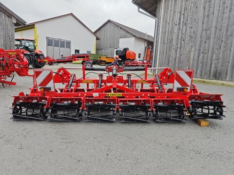 KNOCHE MESSERWALZE SPEEDMAX 300 dient perfekt zu Restpflanzenzerkleinerung und leichten Bodenbearbeitung (Lockerung) SOFORT VERFÜGBAR Technische Daten: - Arbeitsbreite: 3m - Anbautyp: KAT II-III - Anbauart: Heck und Front - Kraftbedarf: 60 PS - Arbeitsgeschwindigkeit: 15-25 kmh - Walzendurchmesser: 390 mm - Anzahl Messer: 11 Stück - Schnittlänge: 6-11 cm - Breite pro Element: 75cm - Gewicht: 1050 kg - Baujahr 2023 - Steinschutz für Heck und Front - Frontschutzgummi - Beleuchtung Heck Versand MÖGLICH! Die zwei hintereinander liegenden Walzen mit 390 mm Durchmesser haben gegenläufige Messer. Damit erzielt man einen sehr engen Kreuzschnitt auf dem Boden. Als “OPEN Cage”-Technik bezeichnet KNOCHE die Walzenkonstruktion ohne Innenachse. Besonders bei großen Mengen von Restpflanzen oder feuchtem Boden zeigt diese Technik Vorteile. Das Material wird förmlich aus der Mitte rauskatapultiert. Ein weiterer Vorteil der KNOCHE SPEEDMAX sind die kurzen Walzenabschnitte. Jedes Element ist nur 75 cm breit. Dadurch ist eine optimale Anpassung an die Bodenkontur möglich. Auch Unebenheiten durch Schlepperspuren werden so bearbeitet. Bis zu 25 km/h kann mit der SPEEDMAX gearbeitet werden – und das bei extrem geringen Kraftstoffverbrauch. Die KNOCHE SPEEDMAX ist in den Arbeitsbreiten 1,5 m, 3,0 m, 4,5 m und 5,6 m erhältlich. Weitere Knoche Anbaugeräte bei uns auf Lager! Alle Angaben ohne Gewähr! Irrtümer vorbehalten! Besichtigung während unserer Öffnungszeiten möglich.