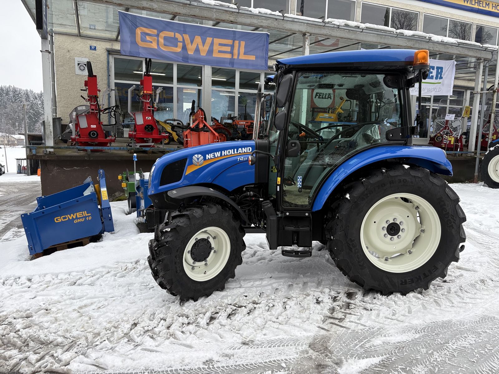 LAGERTRAKTOR MIT GÖWEIL HOCHKIPPSCHAUFEL 2 METER! SOFORT VERFÜGBAR! NEW HOLLAND T4.55S, MY2026, Ausstattung: Komfort-Kabine mit Heizung/Lüftung, LUFTSITZ, RADIO und Beifahrersitz, 3xDW hinten, MHR mit Lift-O-Matic und Außenbedienung, ZUSATZHUBZYLINDER, 2-fach Zapfwelle 540/540E, 4 Stk. Arbeitsscheinwerfer, Vorderachsbock mit Vorbereitung für Fronthydraulik/Frontzapfwelle, Bereifung: 320/70R20 vorne und 420/70R30 hinten, usw.