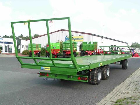 PRONAR Ballenwagen TO 26 / TO 26 M; 18. to., Druckluft, 3-Achser Technische Daten: Gesamtgewicht 18000 kg Eigengewicht 4280 kg Nutzlast ca. 13720 kg Länge Ladefläche ca. 9880 mm Länge Ladefläche ausgezogen ca. 10770 mm Breite Ladefläche ca. 2435 mm Gesamtlänge ca. 11995 mm Gesamtbreite ca. 2500 mm Stahlbodenstärke 3 mm Plattformhöhe ca. 1180 mm Spurweite 1820 mm Parabelfederung Geschwindigkeit 40 km/h Bereifung 500/50-17 Serienmäßige Ausstattung: V-Deichsel mit starrer Zugöse Ø 40 mm 2-Kreis Druckluftanlage, Feststellbremse Plattformverlängerung möglich Seitliche Begrenzung durch Aufkantung Unterfahrschutz hinten Beleuchtungsanlage mit seitlicher Beleuchtung Unterlegkeile mit Halter Lackierung RAL 6010 Modelle M: Ladefläche mit abgerundeten Kanten Löcher an den Plattformrändern 4 mm Bodenstärke Gegen Mehrpreis auf Anfrage: Staukasten für Spanngurte Kunststoffkotflügel vorne und hinten Seitlicher Anfahrschutz ALB-Regler Hydraulische Ladungssicherung (Nur bei Modell M) Bereifung 445/45R19,5 Bereifung 520/50-17 Bereifung 500/50R17 TÜV-Gutachten und Betriebserlaubnis Alle Preise zzgl. MwSt. ab Lager Itterbeck Finanzierung und Anlieferung gegen Mehrpreis möglich