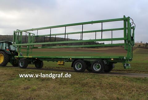 Serienmäßige Ausstattung: ====================== Plattform mit seitlicher Profilaufkantung Plattformverlängerung ausziehbar auf 11,00 m Ladeplattform vorgesehen für die Montage von Rungen Fahrgestell mit variablem Querschnitt, aus dem offenen und geschlossenen Profilen gefertigt Y-Deichsel mit starrer Zugöse Ø 40 Ladegitter mit einstellbaren Neigungswinkel für den Transport von Rundballen und Quaderballen geeignet 2-Leiter Druckluftbremse Kurbelbremse Beleuchtungsanlage mit seitlichen Umrissleuchten Hinterer Unterfahrschutz- homologiert Elektrischer Anschluss hinten Keile mit Halter Zusätzliche Ausstattung, gegen Aufpreis möglich: ======================================= hydraulische Ladungssicherung (nicht ausziehbar) 2-Leiter Druckluftbremse mit ALB ohne Ladegitter seitliche Schutzeinrichtung nach 89/2106/EWG, weiteres Zubehör möglich. Preis zuzüglich Vorfracht und Betriebserlaubnis. Auch in anderen Variation, Größen oder mit Rungen erhältlich. Fordern Sie unsere Prospekte an. Wir beraten Sie gerne. Besuchen Sie unsere ständige Ausstellung auf unserem Gelände und auf den Messen vom 06.03.26 - 09.03.26 Frühlingsmesse Ostheim 09.04.26 - 12.04.26 AGRA Leipzig Wir freuen uns auf Ihren Besuch! ! Technische Daten und Bilder können unterschiedlich sein ! Preise aufgrund der aktuellen Situation unter Vorbehalt!