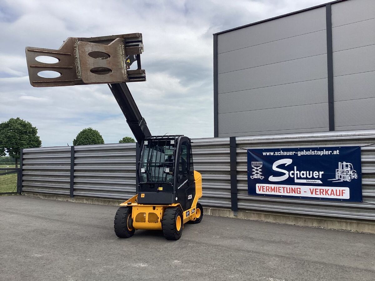 Bauart: Teleskopstapler, Tragkraft: 3500kg, Hubhöhe: 4400mm, Bauhöhe: 2220mm, Gabellänge: 1200mm, Batterie: 12V , Bereifung vorne: Vollgummi , Bereifung hinten: Vollgummi , Anbaugeräte: Seitenschieber, Sonderausstattung: Arbeitsscheinwerfer hinten, Arbeitsscheinwerfer vorn, Heizung, Vollkabine, CE Zertifikat, Safety Light, Sonderausstattungbeschreibung: Kohler 2,5ltr. 4 Zylinder-Dieselmotor mit 46KW/62PS Hydrostat-Getriebe mit elektronischer Steuerung Servo Joystick Bedienung Nenntragfähigkeit 3500kg