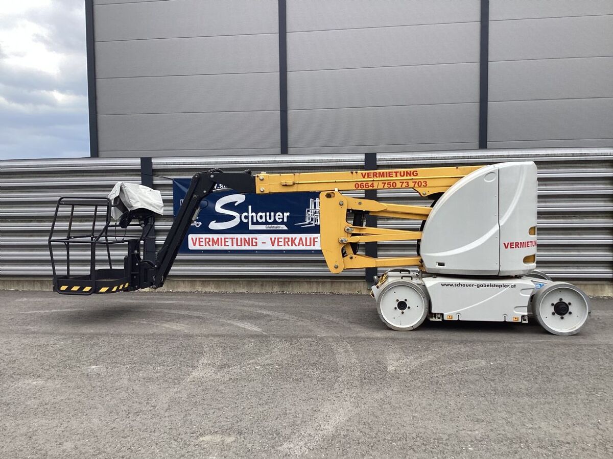 Bauart: Arbeitsbühnen / Gelenkarbeitsbühne, Tragkraft: 230kg, Hubhöhe: 13000mm, Bauhöhe: 1990mm, Bereifung vorne: Bandagen Einfach 60 - 80% , Bereifung hinten: Bandagen Einfach 60 - 80% ,