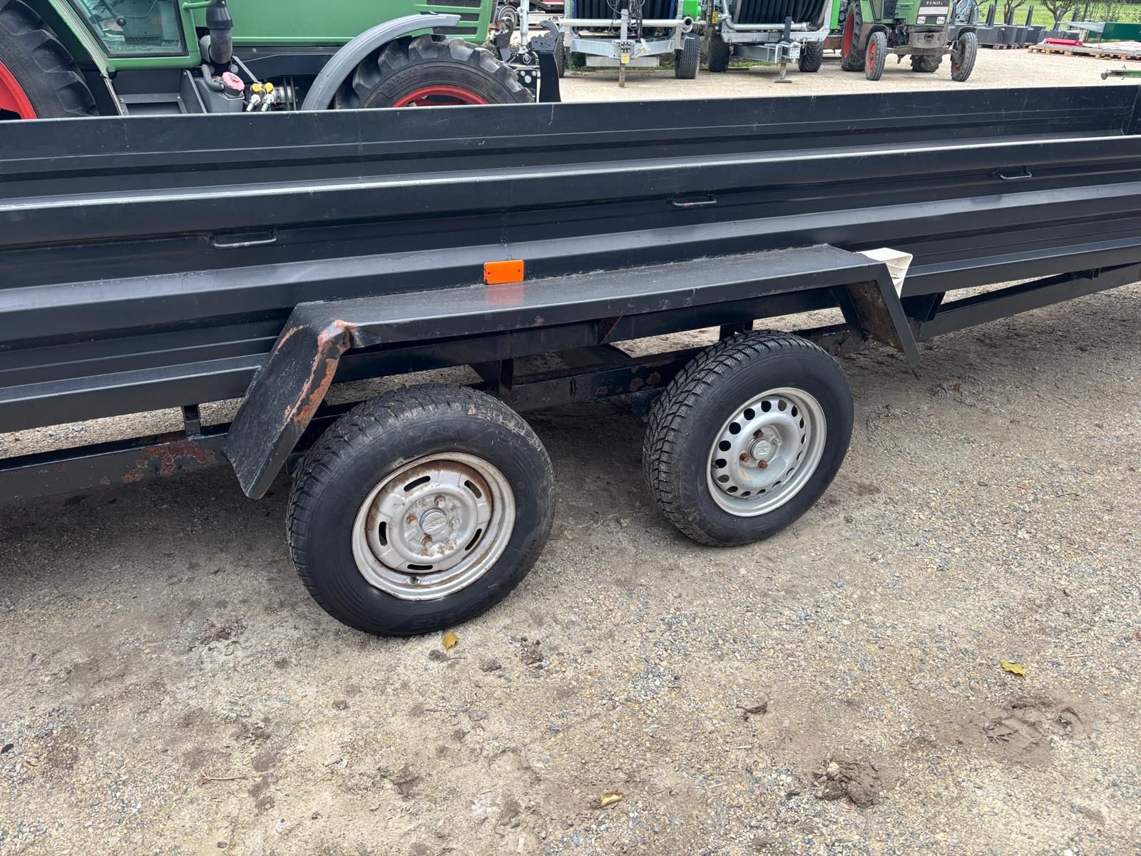 Fahrzeugbeschreibung – Anhänger • Fahrgestellnummer: E 9371 • Baujahr / Erstzulassung: 1993 Technische Daten • Eigengewicht: 580 kg • Zulässiges Gesamtgewicht: 1100 kg • Zulässige Nutzlast: 520 kg • Achslast: 1. Achse 550 kg / 2. Achse 550 kg • Bremse: mechanische Auflauf-/Allradbremse, zusätzlich Reißseilbremse • Bereifung: 165 R 13 Abmessungen • Länge: 9400 mm • Breite: 1780 mm • Höhe: 1400 mm Kupplung • Zugvorrichtung: Kugelkopf • Zuggesamtgewicht (max.): 1300 kg