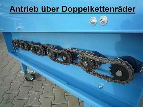 Wir freuen uns Ihnen mitteilen zu dürfen, dass wir Ihnen die Hauptmodelle unserer Bürstenmaschinen (V 5510, V 5514, V 11010 und V 11014) deutlich günstiger anbieten können. Dies haben wir durch die Herstellung größerer Stückzahlen und auch durch einen günstigeren Materialeinkauf erzielen können. Trotz dieser günstigeren Verkaufspreise differenzieren wir uns in der Qualität stark von osteuropäischen Wettbewerbern, zumal die Herstellung zu 100% im eigenen Maschinenbau in Itterbeck stattfindet. Überzeugen Sie sich gerne von unserem Preis-Leistungsverhältnis! NEUMASCHINE; Eigene Herstellung, Rahmen pulverbeschichtet (Einbrennlackierug) bei uns in Itterbeck gebaut: EURO-Bürste V 5514, 11 Bürsten + 3 Spiralen, gewellte Bürsten, für Kartoffeln, Zwiebeln, Möhren, rote Beete, Runkelrüben, Äpfel usw. Antrieb über Getriebemotor, Bürstendurchmesser 135 mm, Drehzahl: 176 U/min., Gummiabdeckung, Fahrgestell mit 2 Lauf- und 2 Lenkräder mit Höhenverstellung. Bei Verwendung eines Regelmotors läßt sich die Geschwindigkeit stufenlos regeln von 64 – 176 U/min. Bürstenanzahl: 14, Bürstenbreite: 550 mm, Motor: 0,55 kw, Maschinenlänge: ca. 2000 mm, Maschinenbreite: ca. 800 mm, Gewicht: ca. 210 kg. Gegen Mehrpreis: Frequenzregler Staubabsaugung Spirale statt Bürste Wassersprüheinrichtung Schmutzauffangwanne und Schmutzwasserpumpe auf Anfrage. Anlieferung gegen Mehrpreis möglich. Unsere Standartbürstenmaschinen: V 5510, 10 Bürsten, 550 mm breit, Leistung ca. 7 to/Std. V 5514, 14 Bürsten, 550 mm breit, Leistung ca. 7 to/Std. V 11010, 10 Bürsten, 1100 mm breit, Leistung ca. 12 to/Std. V 11014, 14 Bürsten, 1100 mm breit, Leistung ca. 12 to/Std. V 16514, 14 Bürsten, 1650 mm breit, Leistung ca. 13 to/Std. V 22014, 14 Bürsten, 2200 mm breit, Leistung ca. 20 to/Std. Eigene Herstellung, daher Bau in Länge und Breite auch nach Wunsch möglich.