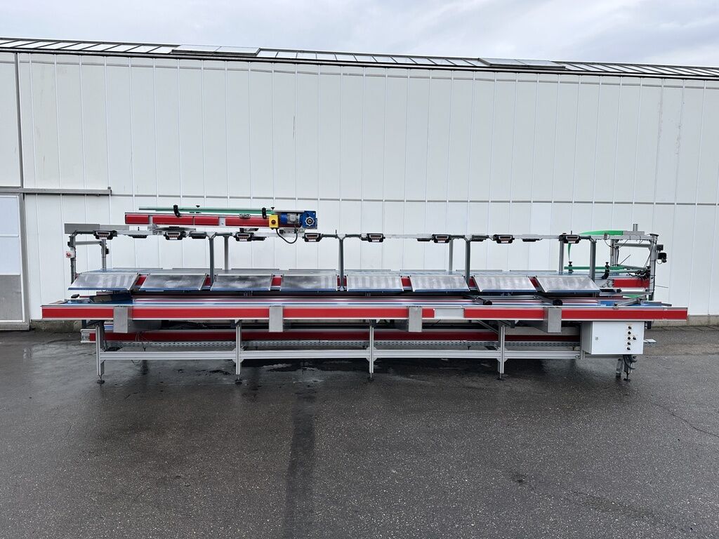 Stas Doppel Verpackungsband mit 16 WaagenGeeignet für verschiedene Obstsorten wie Äpfel, Birnen, Fleischtomaten usw.Stas Kombi-Abnahmelinie besteht aus: 2 x Abnahmebänder ca. 600 x 52 cm 2 x Rücklaufbänder 700 x 26 cm hinter dem Verpackungsbereich 16 Waagen mit Wägezellen in den Kistenhalterungen8 Waagen pro SeiteAnzeigen: Revere Transducers VT100 TC7827Wägezellen: Tedea Huntleigh Modell 125 Zentrale AuslaufF'örderband 700 x 41cm für zweite Wahl mit 8 Rutschkanälen Rollenbahn 700 x 70 cm für die Zufuhr leerer