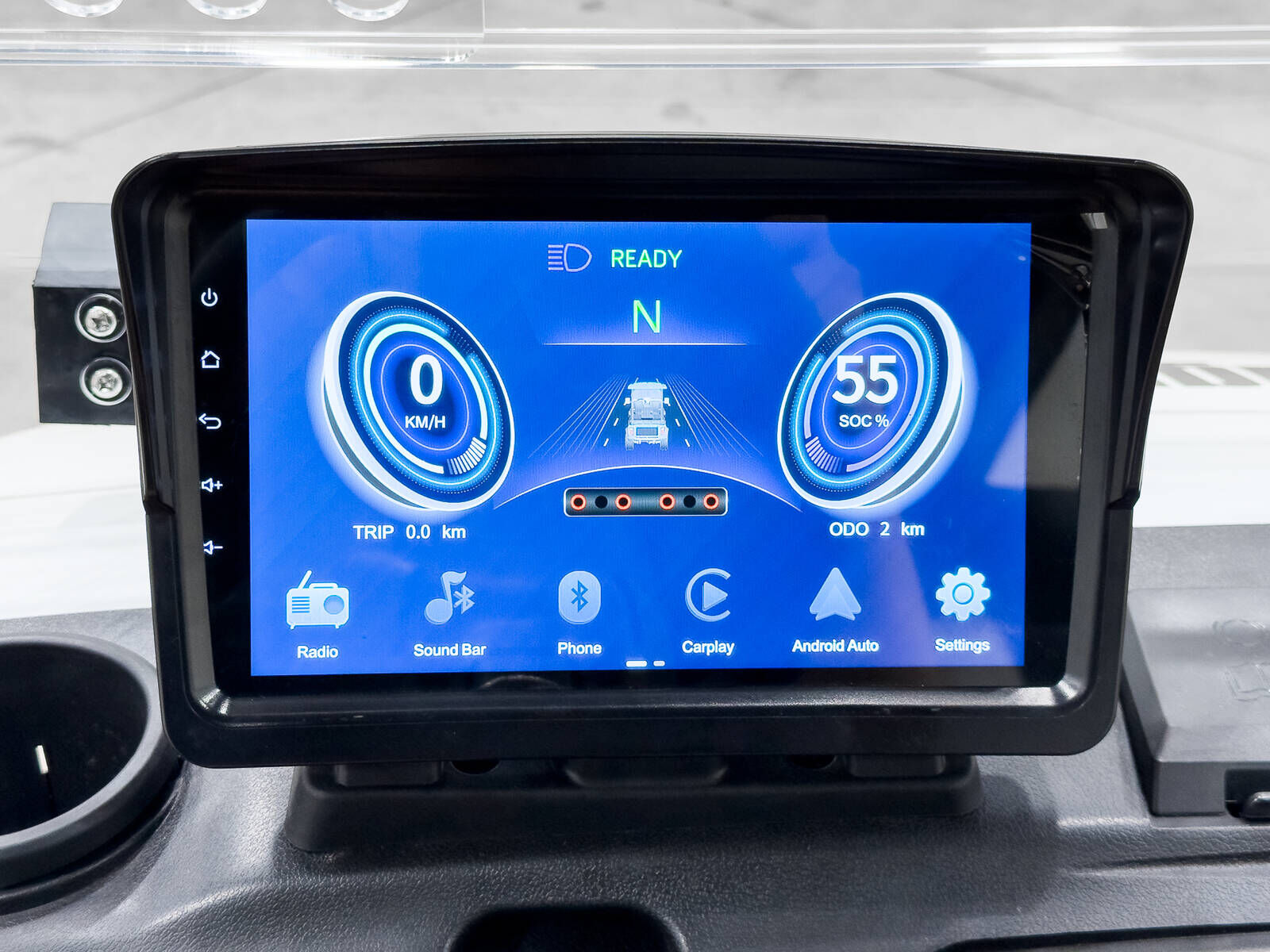 Neu HDK D5 RANGER 6 PLUS Golfwagen, 6-Sitzer 6-sitziger elektrischer Golfwagen, 48 V / 160 Ah Lithium-Ionen-Batterie, eingebautes 25 A Ladegerät, Display, Audiosystem, Leichtmetallfelgen, weiß Baujahr: 2025/2026 Motorleistung PS: 8 PS Motorentyp: 48 V / 160 Ah Lithium-Ionen-Akku Max. Geschwindigkeit: 35 km/h Gewicht: 600 kg // KABINE // - Schwarz-weiße Sitze mit Sicherheitsgurten - Armlehnen - Schwarzes Dach - 9" (23 cm) Touchscreen-Display - Apple CarPlay Funktion - Soundbar - Lautsprecher unter den Sitzen - Haltegriffe über Kopf - Getränkehalter - Ablagefächer - Abschließbarer Kofferraum - Klappbare Frontscheibe - Lüftungsöffnungen in der Frontscheibe - Seitenspiegel // FELGEN UND REIFEN // - 225/50R14 Reifen - 14x7"-Leichtmetallfelgen // BELEUCHTUNG UND ELEKTRIZITÄT // - Straßenbeleuchtung - USB-Ladeanschluss - 12-V-Steckdose // ZUSATZGERÄTE // - Rückfahrkamera // ANDERE // - Typ: DEL3065G - Betriebsart: elektrisch - Steuergerät: EV48-400 - Motorleistung: 6,3 kW - Batterie: Lithium-Ionen 48 V / 160 Ah - Ladegerät: 25 A, eingebaut - Ladezeit: 4–5 Stunden - Höchstgeschwindigkeit: 35 km/h - Abmessungen: 3,76 × 1,42 × 2 m - Achszahl: 2 - Radstand: 2,9 m - Spurweite vorn: 1,02 m - Spurweite hinten: 1,03 m - Wendekreis: 5,8 m - Vorderachsfederung: Einzelradaufhängung mit doppeltem Dreieckslenker - Hinterachsfederung: Blattfeder - Bremse: hydraulisch - Zulässiges Gesamtgewicht: 1.059 kg - Eigengewicht: 600 kg - 2 Jahre Vollgarantie und 8 Jahre Batteriegarantie ab Werk HDK Bei Fragen stehen Wir gerne zur Verfügung. Telefon: siehe Kontaktinfo Wir bieten auch Transport in ganz Europa an. Agropark: 43887