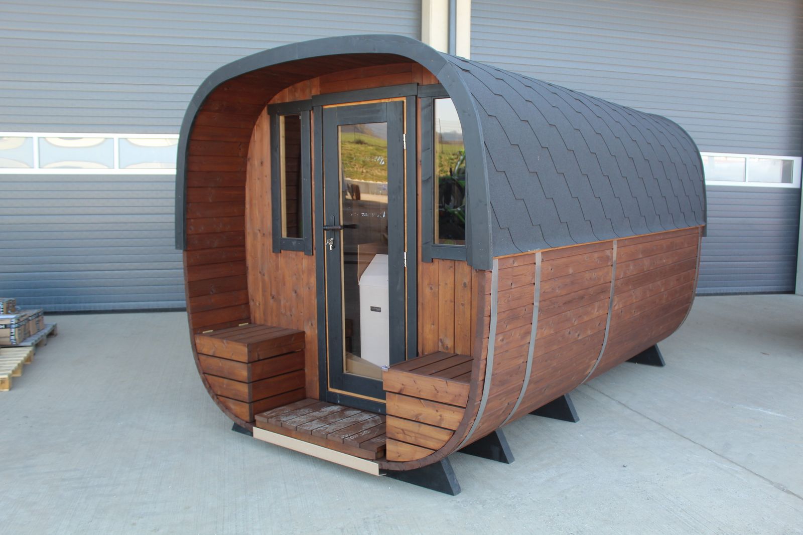 Finnische Delux Sauna - Wände 40 mm Fichte Thermoholz - Dach mit Icopal Plano Waben bedeckt - Außenveredelung erfolgt mit Remmers HK Lasur oder Tikkurila Terrassenöl - Eingangstür abschließbar mit Fenster - Tür Abstellraum aus Glas - Der Dampf wird entweder in einem holzbeheizten Hitzstein oder in einem Elektroheizer erzeugt - Frische Luft wird durch ein Belüftungssystem gewährleistet - Saunaraum mit Sitzbänke und Sitzbühne - Bodengitter in Vor- und Saunaraum - Terrasse mit Sitzbänke - Niro Metallbänder mit verstellbaren Klammern - Rückwand mit uneinsehbarem Fenster - LED Beleuchtung Saunen benötigen keine Baugenehmigung Die Vorbereitung des Installationsortes Ihrer Fasssauna ist einfach: Sie benötigen lediglich eine ebene Fläche aus Gehwegplatten oder eine ebene Fundamentstruktur, die das Gewicht der Sauna tragen kann und eine stabile Basis bietet. Wenn Sie Fragen haben oder weitere Unterstützung benötigen, zögern Sie bitte nicht, uns zu kontaktieren. Unser engagiertes Team in Deutschland steht Ihnen mit Rat und Tat zur Seite. Wandstärke: 40 mm Breite: 230 cm Länge: 385 cm Höhe: 220 cm Kapazität (Personen): 4 Anzahl der Zimmer: 2 Zusätzliche Informationen: In der Standardausführung enthalten sind rostfreie Metallbänder, verstellbare Klemmen, Icopal-Dachschindeln (Plano Natur) und Remmers HK-Lasur für den Außenanstrich. Dampfraum: Das Innere des Dampfraums ist aus elegantem Erlenholz gefertigt. Für zusätzlichen Komfort sind sowohl im Vorraum als auch im Saunaraum Bodenroste installiert.
