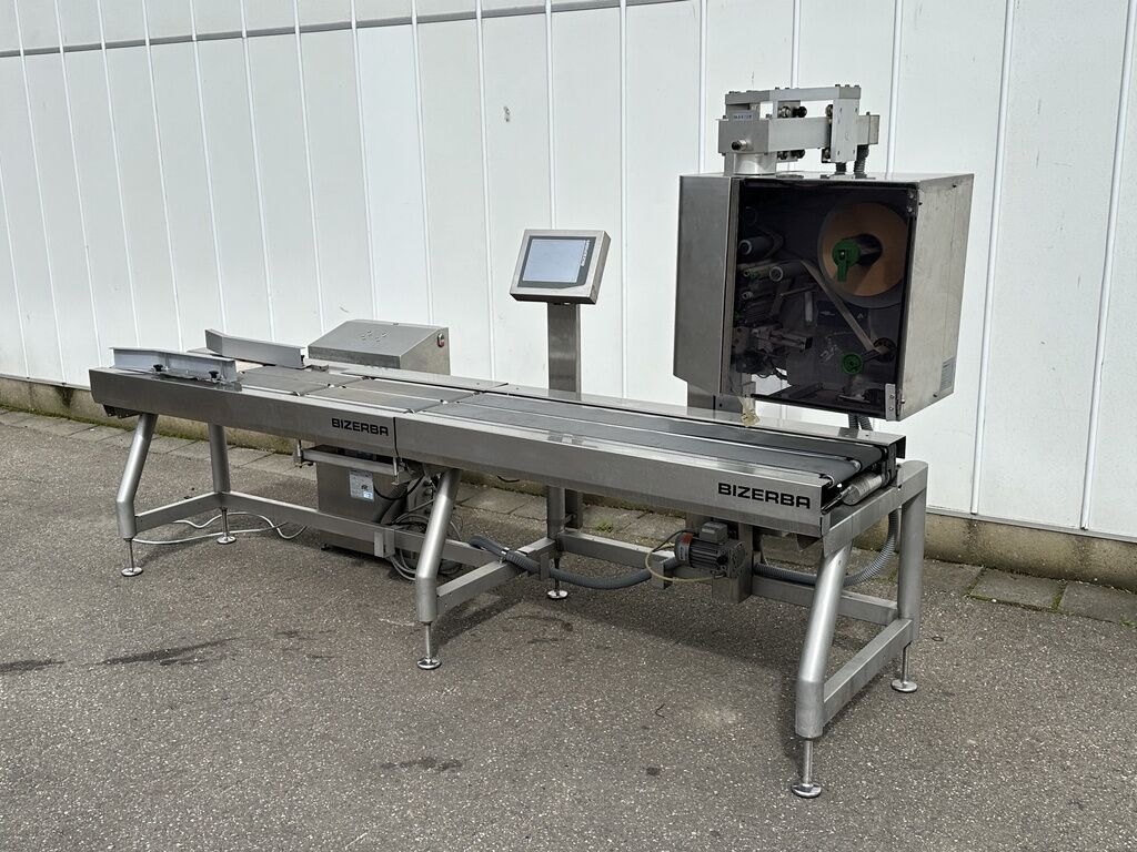 Bizerba GLM-I wiegen PreisetikettiererDer Bizerba-Etikettierer kontrolliert auch das Gewicht und hat somit eine KontrollwägefunktionAber nur Preisauszeichnung, nicht Kontrollwägung (laut Inspektion)Schwarz-weißer Touchscreen Verkaufspreis Neu ca.: 50.000 - 60.000 EuroDie Maschine wurde vom Hersteller geprüft und funktioniert gute. Checkweigher-FunktionTerminal mit schwarz-weißem DisplayMax 6 kg.Min 20 G.Kapazität: 150 Etiketten pro MinuteDie Waage ist für den niederländischen Markt zugelassen. In anderen Ländern muss sie vor Ort geprüft werden.Nur Preisauszeichnung, nicht Kontrollwägung (je nach Inspektion)Klebt auf der Vorder- oder Rückseite der VerpackungHervorragend geeignet für die Kombination mit einer Verpackungsmaschine.Weitere Informationen oder eine vollständige Angebot? Fragen Sie das einfach und schnell an auf unsere Duijndam Machines Website! Sie können uns auch anrufen.Alle zuverlässigen Maschinen finden Sie auf unserer Website.Seit 40 Jahren zuverlässiger Händler von gebrauchten Landwirtschafts- und GartenbaumaschinenDie Maschinen werden vor Auslieferung geprüftErfahrenes TeamWir können Ihnen helfen, die Maschine zu Ihrem Unternehmen zu TransportierenDuijndam MachinesDer Spezialist in Gebrauchtmaschinen für Landwirtschaft und Gartenbau