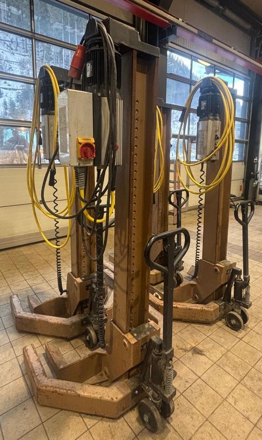 Die Ausstattung besteht aus insgesamt vier Hebebühnen: Zwei Stück sind funktionstüchtig, während zwei Stück defekt sind und repariert werden müssen. Die Hebebühnen wurden im Jahr 1993 gebaut und bieten eine beeindruckende Traglast von 6500 kg pro Säule, was sie für den Einsatz mit schweren Fahrzeugen geeignet macht.