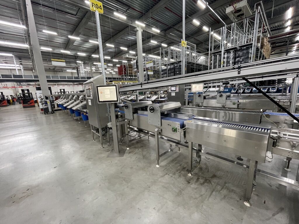 Diese Wiege- und Umpacklinie wurde für das manuelle Wiegen und Umpacken von Schalen mit Beerenobst und Trauben vor einer Traysealer-Maschine eingesetzt.Die Linie ist mit einem Proseal Slipstream Linienverteiler mit 3 Spuren ausgestattet, an den eine Kontrollwaage angeschlossen werden kann. Die Schalen mit Beerenobst (z. B. Erdbeeren), die über- oder untergewichtig sind, werden auf eine Spur geleitet und anschließend zur Arbeitsposition der ersten Waage zurückgeführt.Neben Schalen mit Beerenobst kann diese Maschine auch für das manuelle Wiegen anderer Produkte in Schalen verwendet werden, wie z. B. Erdbeeren, Kirschen, Trauben, Beeren, Tomaten usw.Die Linie ist mit 14 ergonomischen Abwiegarbeitsplätzen ausgestattet, die auf beiden Seiten des Förderbands angeordnet sind, sodass mehrere Bediener gleichzeitig arbeiten können und eine hohe Produktionskapazität erreicht wird.Hauptmerkmale:14 manuelle Wiegearbeitsplätze, angeordnet als 2 × 7 Arbeitsplätze auf beiden Seiten der Linie14 Waagen mit digitalem Display, Dutch Weighing Systems, Modell YES 701YES Manager Software (Yield Efficiency System) mit zentralem Windows-10-PC für:YES Manager ist eine Produktions- und Wägemanagementsoftware, die Daten von Wägestationen erfasst, analysiert und nutzt, um Give-away zu reduzieren, Bediener zu