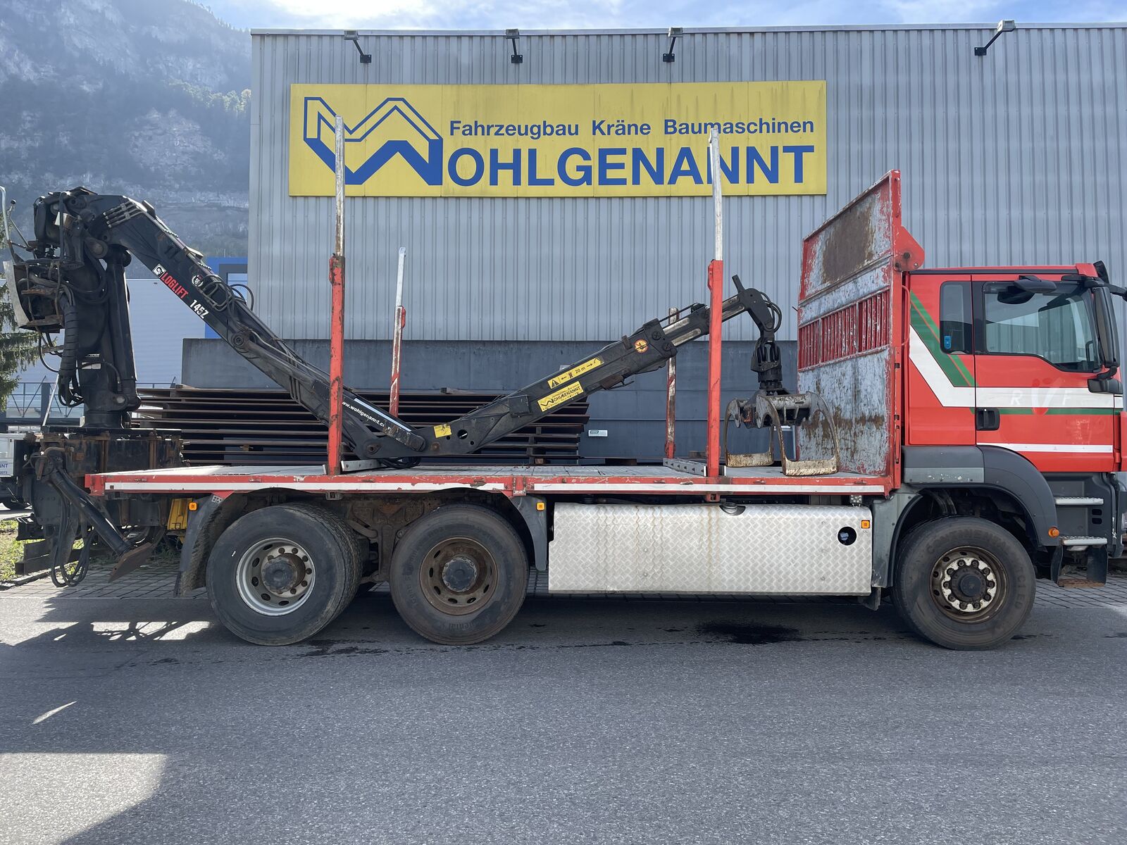 MAN Holztransporter mit Heckkran Loglift F145ZT 95