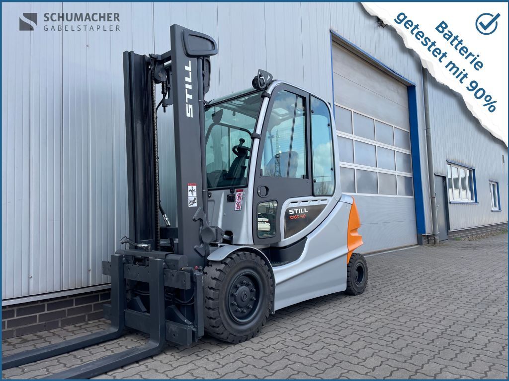 Bauart: Frontstapler / Elektro 4 Rad-Stapler, Tragkraft: 4000kg, Hubhöhe: 3480mm, Bauhöhe: 2550mm, Gabellänge: 1200mm, Batterie: 90% Restkapazität PzS Bj. 2019 80V 930Ah Zustand: 80 - 100%, Bereifung vorne: Superelastik Einfach 80 - 100% , Bereifung hinten: Superelastik Einfach 80 - 100% , Anbaugeräte: Seitenschieber, Sonderausstattung: 3. Ventil, 4. Ventil, Arbeitsscheinwerfer hinten, Arbeitsscheinwerfer vorn, Heizung, Vollkabine, Safety Light, Rundumleuchte, LED, Beschreibung: Überholt, gewartet und geprüft gemäß FEM 4.004 (UVV) // Completely repaired, serviced and checked