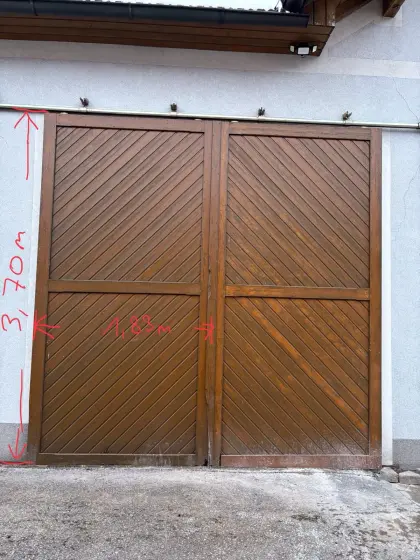 Verkaufe gebrauchte selbstgebaute Tore mit den Maßen pro Flügel: Breite 183 cm, Höhe 370 cm, inkl. Schienen. Preis pro Tor (2 Stk. vorhanden). Dom in vrt Portali/ ga