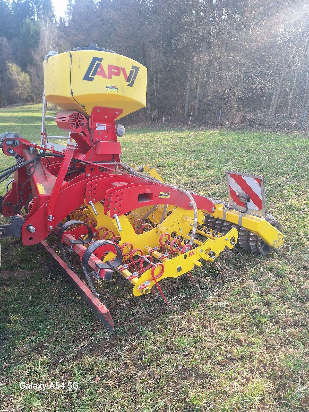 Biete Grünlandnachsaat mit APV GP 300M1. Striegel mit 4 Zinkenreihen zum extremen Belüften der Grasnarbe. Saatkasten für bis zu 300 Kilo Saatgut. Schwere Sternradwalze zum Andrücken des Saatguts.