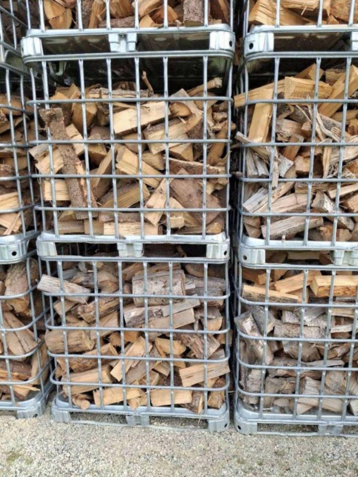Weiches Brennholz, 33 cm, in Gitterboxen.