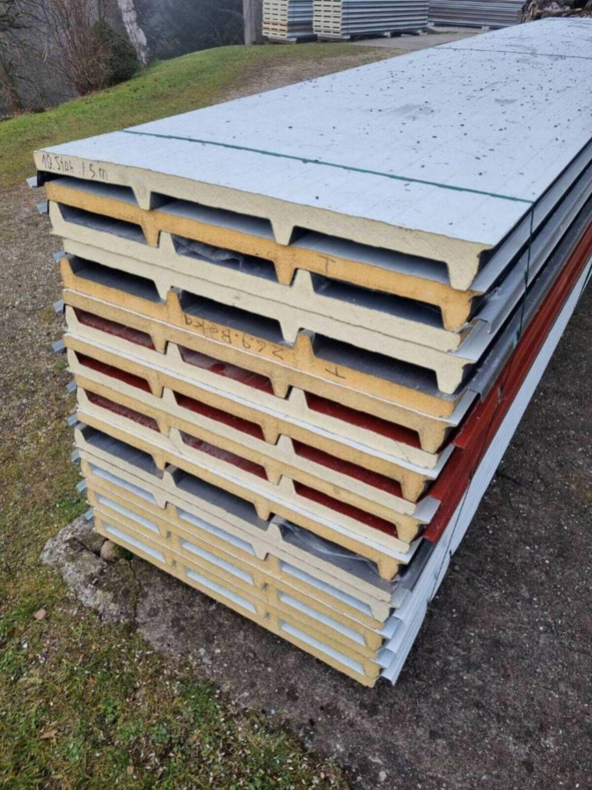 Strešni sendvič paneli z dimenzijami: 40 mm s trapezom 80 mm, širina: 1 m, dolžina: 5 m, antracit, rdeča opeka, srebro, siva, rdeča itd., idealni za manjše prizidke ali nadgradnje, tudi za lope za orodje. Ogled je mogoč po dogovoru. Po potrebi in dogovoru je možna tudi dostava. Dokler zaloge ne poidejo. Cena/m². Cena je pogojna.