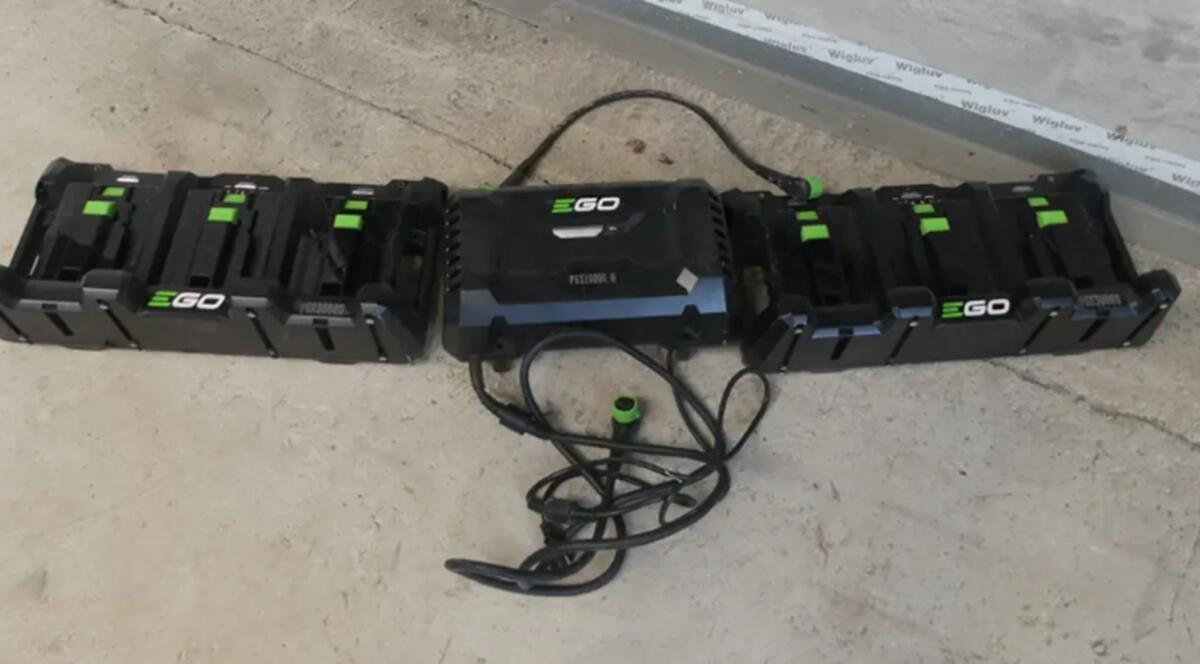 Ladegerät mit 2 Stk. Ladeträger EGO PGX1600E-H, 230 V, 1.600 W, Output: 56 V, 24A, Neu, wurde noch nie benutzt. Lagerort Österreich, kann aber innerhalb Deutschland versendet werden. Es handelt sich um einen Privatverkauf, keine Gewährleistung oder Rücknahme möglich.
