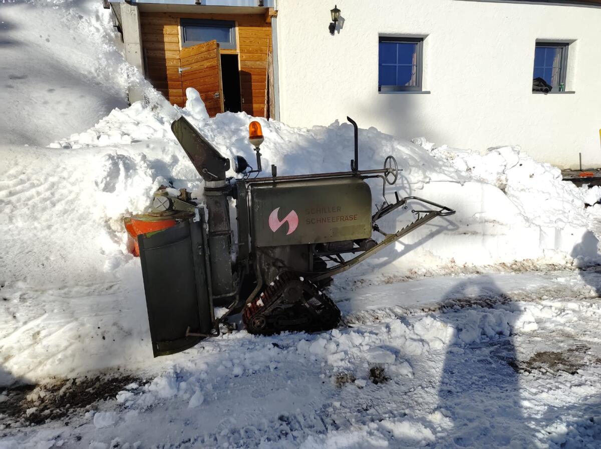 Schneefräse für große Schneemengen. Extrem, stark, unverwüstlich. Die ehemalige Militärschneefräse von Schiller hat stehende Walzen, somit kann auch gepresster Schnee mühelos meterweit geschleudert werden. 8 vorwärts und 2 rückwärts Gänge. Schleuder mit 2 Geschwindigkeiten, ebenso können die Fräswalzen mit 2 unterschiedlichen Geschwindigkeiten unabhängig angetrieben werden. VW Industriemotor mit rund 42 PS. Elektrostart, aber auch mit Handkurbel zu starten. Mit Sitz macht die „Arbeit“ richtig Spaß. Kettenantrieb, rund 1.300 kg schwer. Läuft super, springt sofort an und wird lediglich aufgrund von Platzmangel verkauft. Videos im Betrieb auf Anfrage! Privatverkauf ohne jegliche Gewährleistung.