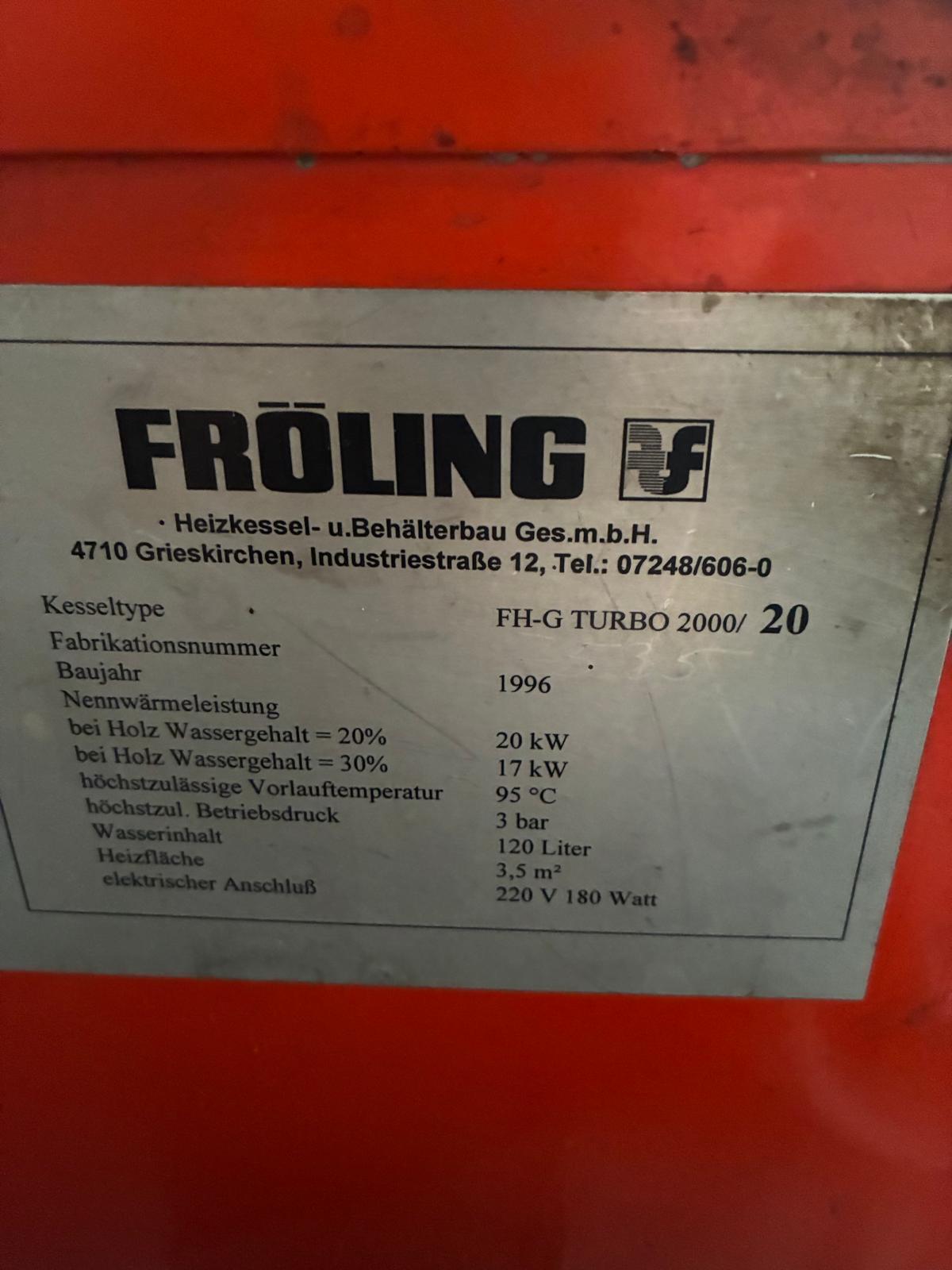 Verkaufe Fröling Stückgutkessel FH-G Turbo 2000/20, Bj. 1996, mit Pufferspeicher, Ausdehnungsgefäß, Rauchrohr und Steuerung.