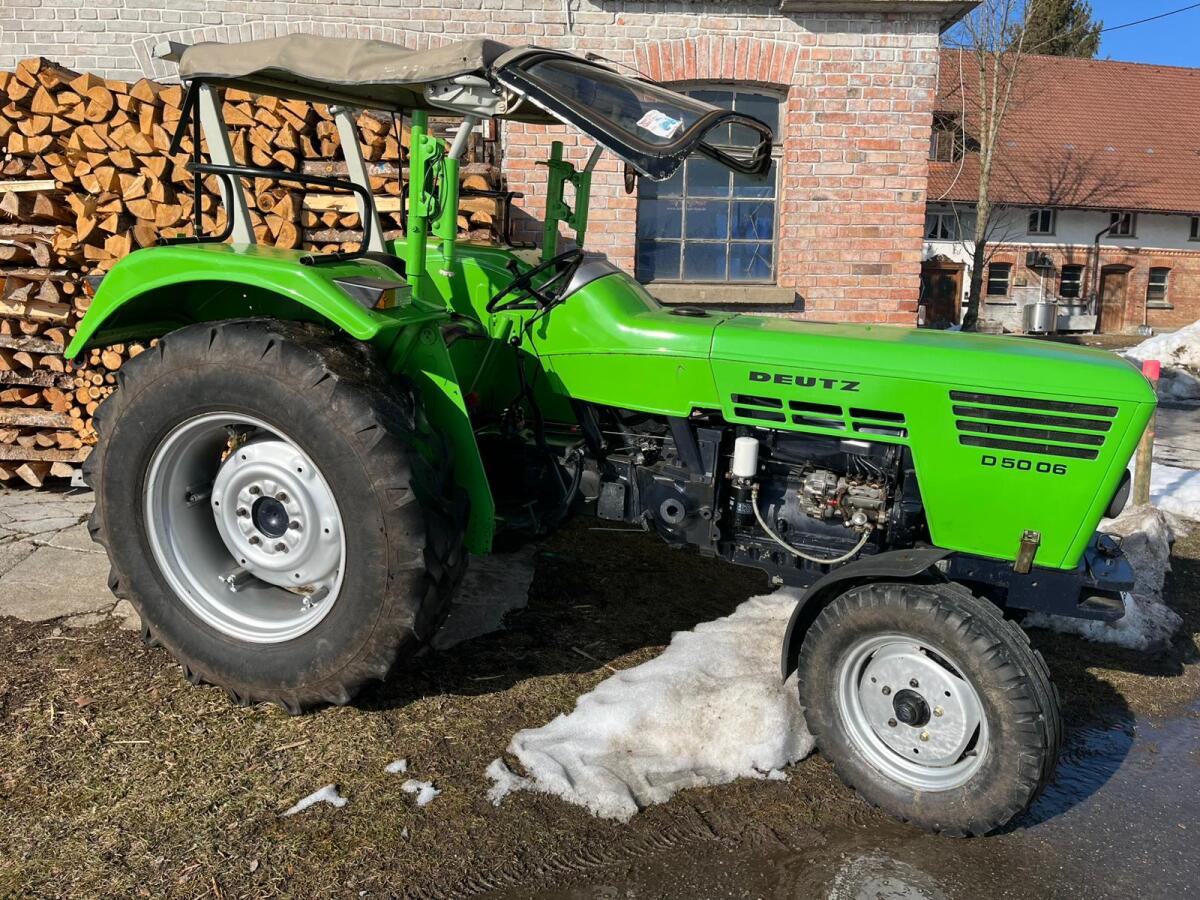 Wegen Anschaffung eines Allradschleppers verkaufen wir unseren gepflegten Deutz 5506, der sich seit 2013 in Familienbesitz befindet und stets trocken untergestellt war. Regelmäßige Wartungen fanden in einer Fachwerkstatt statt (Rechnungen vorhanden). 4 Zylinder, luftgekühlt. Zapfwelle 540 u. 1.000. HU bis 6/2027. Reifen vorne noch ca. 20 %, hinten ca. 30 %. Anhängemaul u. Ackerschiene vorhanden, ebenso die Originalbetriebsanleitung. Optional mitgegeben werden können ein Stier-Hecklader mit Schaufel (guter Zustand) und ein ca. 60 kg-Frontgewicht Marke Eigenbau. Bekannte Mängel: Tankanzeige defekt, leicht ölfleucht, Scheibenwischer ohne Funktion.
