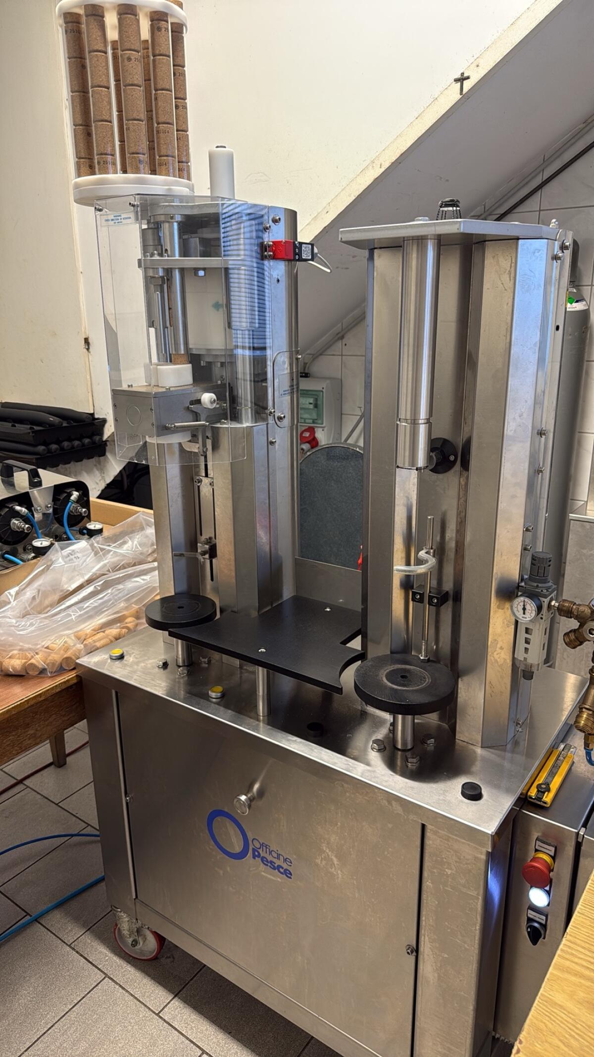 Eine isobarische (oder Gegendruck-) Abfüllmaschine füllt kohlensäurehaltige Getränke ab: Bier, Sekt, Erfrischungsgetränke und Apfelwein. Mechanische Verkorkungsmaschine für Champagnerkorken mit Druckknopfbedienung, pneumatischer Flaschenhebung und manueller Korkenverteilung.