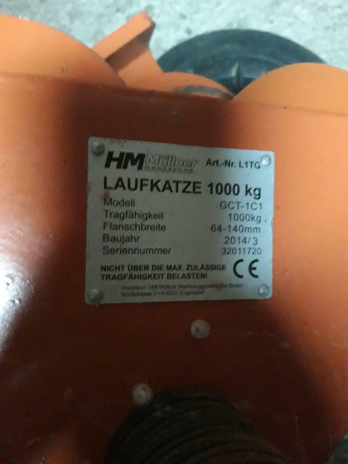 Verkaufe Laufkatze für Kran 1.000 kg mit 1,9 m langen T-Träger und el. Kettenzug. Neuwertig. Abholung in 6123 Terfens.
