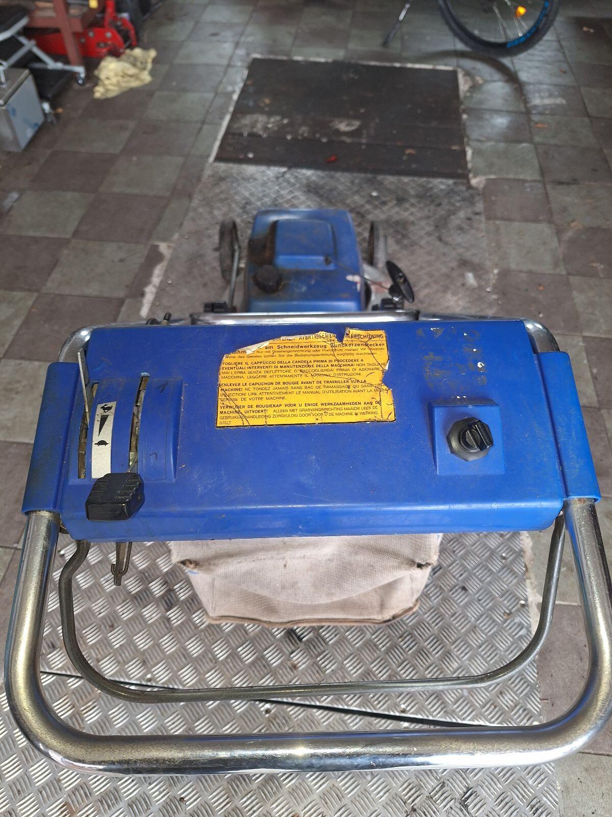 Funktionstüchtiger Yamaha Rasenmäher, zweigang mit Grasfangkorb.