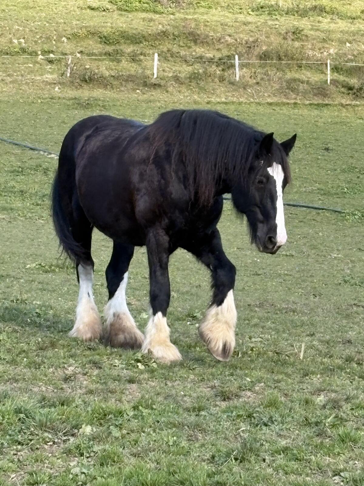 Zu verkaufen 16-jährige Shire Stute, ganz ruhig, für Anfänger geeignet, geritten und gefahren.