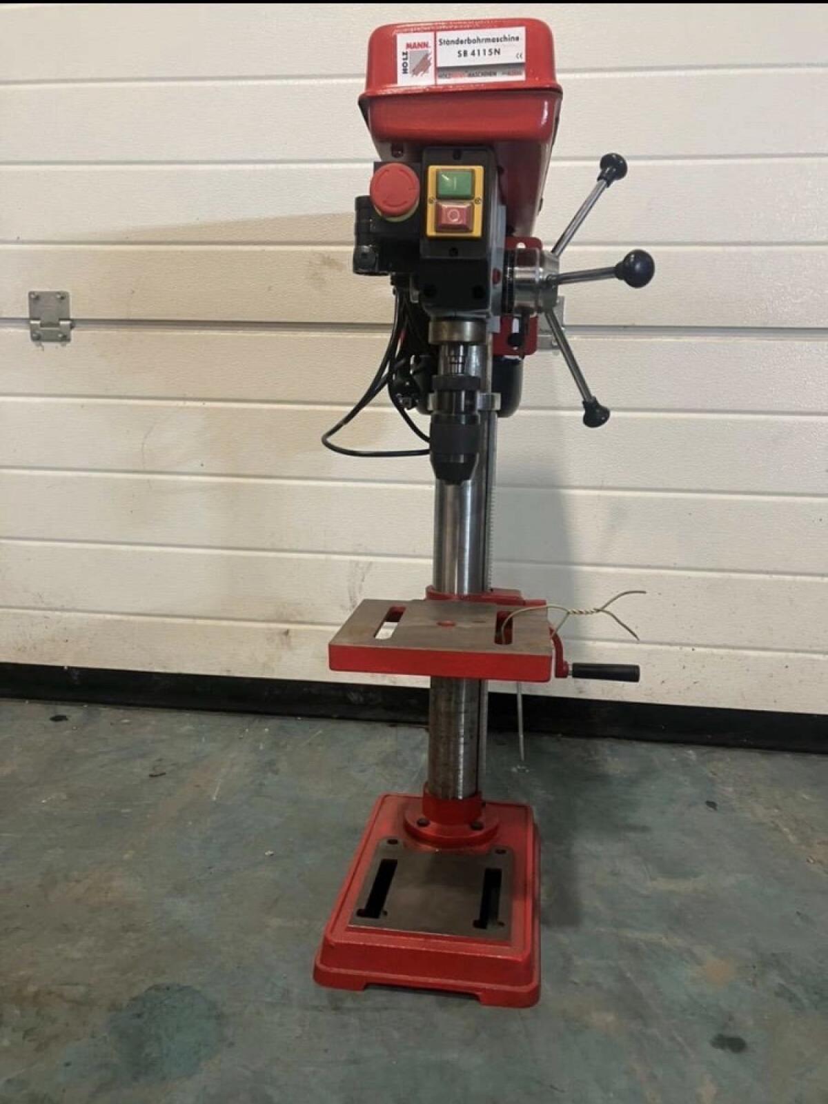 Ständerbohrmaschine SB4115N, 230 V, max. Drehzahl: 2.500 U/min, stabiles Bohrgerät für diverse Arbeiten, mit robuster Grundplatte für Standsicherheit, Schalterdrücker. Dreiarmhebel mit Bohrtiefenskalierung, mit unterschiedlicher Leistung. Die Ständerbohrmaschine SB4115N von HOLZMANN-MASCHINEN ist dein zuverlässiger Partner für Bau- und Renovierungsarbeiten. Mit einer Leistung von 230 V und einer maximalen Drehzahl von 2.500 U/min bietet sie genug Power, um mühelos durch Holz und Stahl bis zu einem Dm. von 16 mm zu bohren. Dank der robusten Grundplatte steht die Maschine sicher, während der Dreiarmhebel mit Bohrtiefenskalierung präzise Arbeit ermöglicht. Das Schnellspannfutter erleichtert die Bedienung.