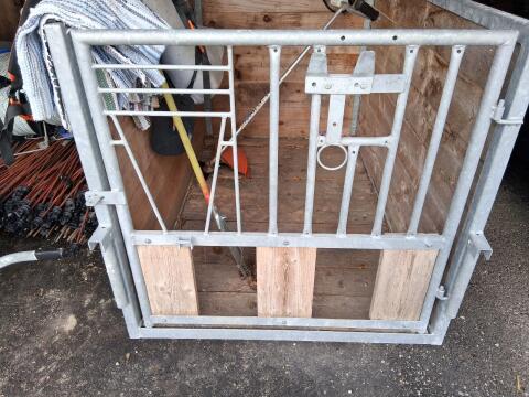 1 rechte Stalltüre, PVC-Füllung, 220 x 145, € 500,-.
