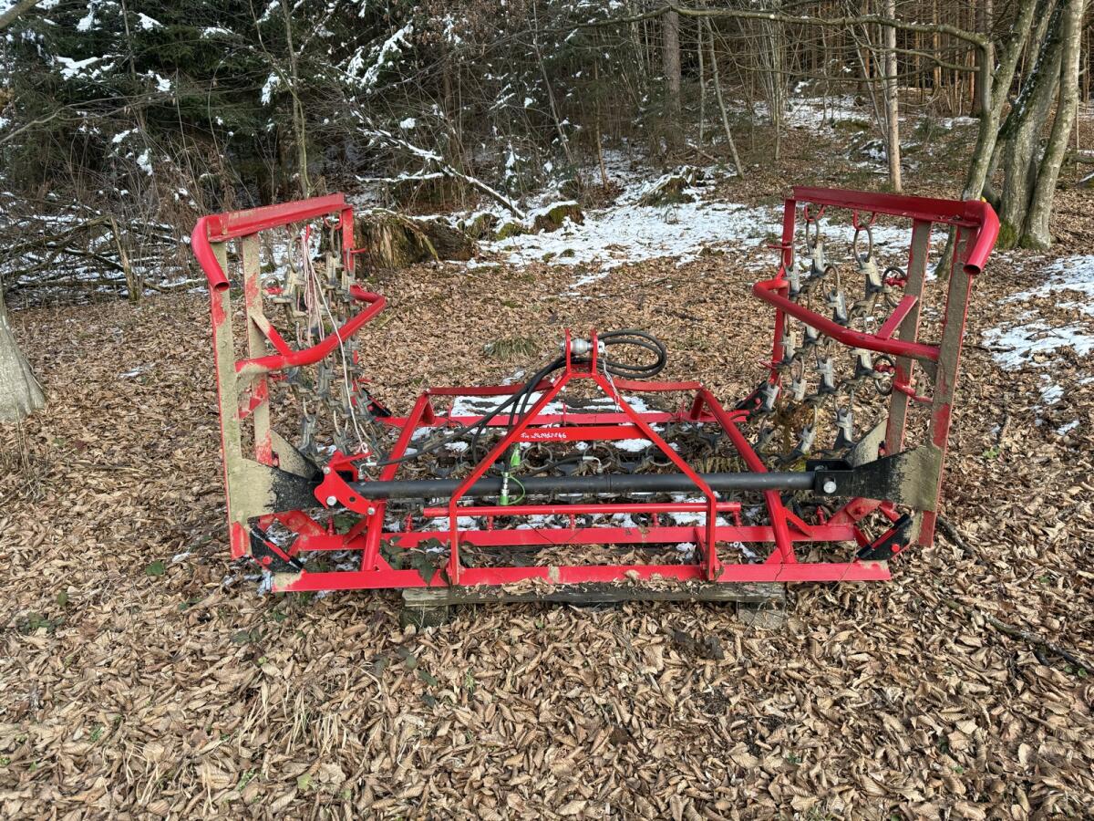 Sterco travniška brana v novem stanju z 1 valjem, letnik 2025, približno 1,5 ha vlečena, širina 4 m, 4 vrste, zaprt okvir, tritočkovni priklop kat. II, teža približno 360 kg, hidravlično zložljiv (1 valj dw), mehanska varnostna naprava za prevoz, strigalna mreža z glavnim okvirom povezana s skobami, strigalna mreža se lahko uporablja na obeh straneh. Prodaja zaradi opustitve hobija.