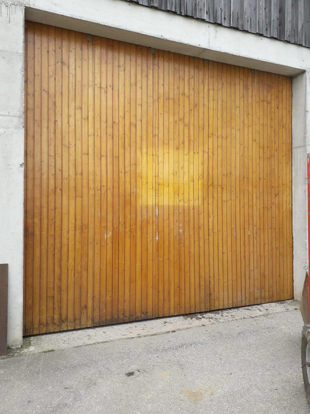 Tore inkl. Schienen sind demontiert und zur Abholung bereit. 1 Stk: Maße: 4,50 m breit, 3,90 m hoch, 1 Stk: Maße: 6 m breit, 3,80 m hoch.