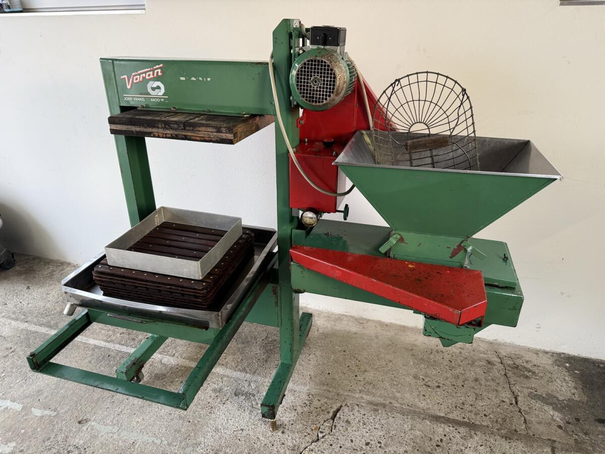 Voran Obstpresse / Mostpresse. Zum Verkauf steht eine Obstpresse / Mostpresse Kombination der Marke Voran mit diversen Zubehör. Das Gerät befindet sich in gutem, gepflegtem Zustand, ist voll funktionsfähig und sofort einsatzbereit.