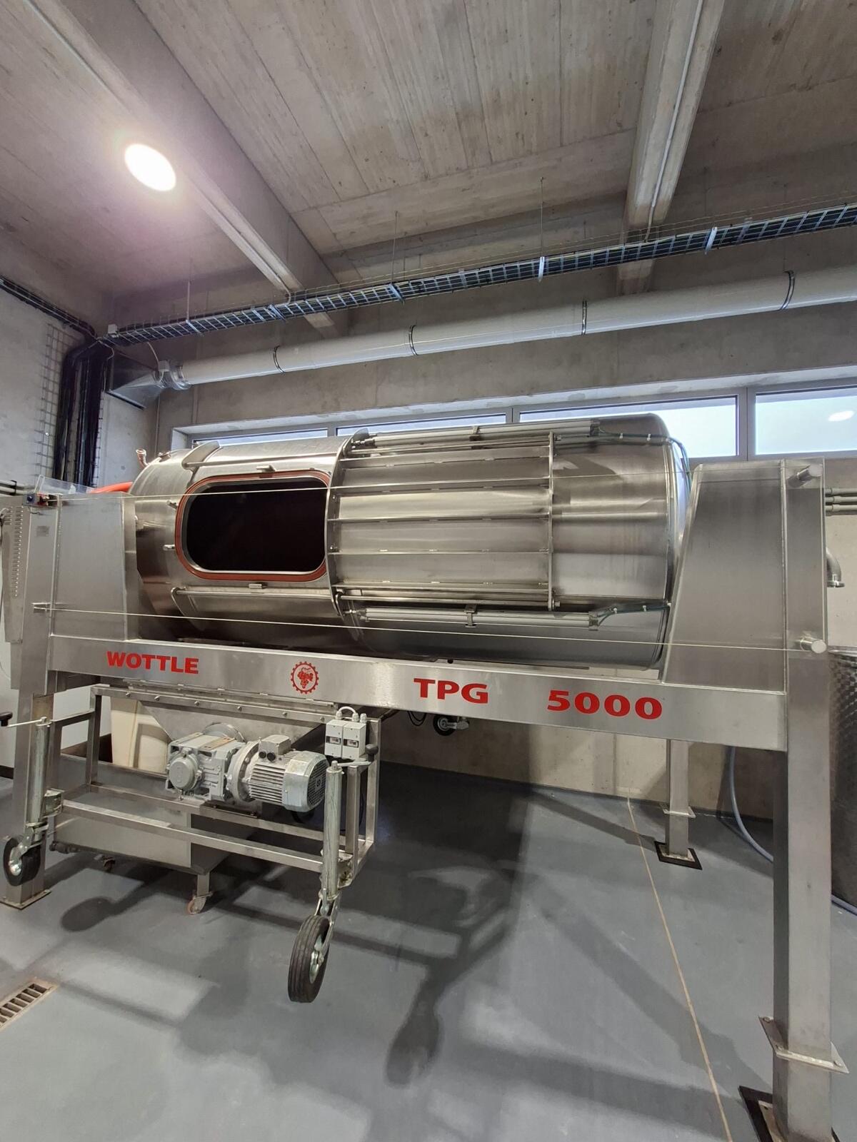 Weinpresse Wottle TPG 5000, Bj. 2013, Volumen des Presskorbs 5.000 l. Automatisches Schließen der Türen. Türdichtung, geschlossenes Presssystem, zentrale Befüllung, zentraler Abflussbehälter, Schwimmerschalter, erhöhter Rahmen. Voll funktionsfähig.