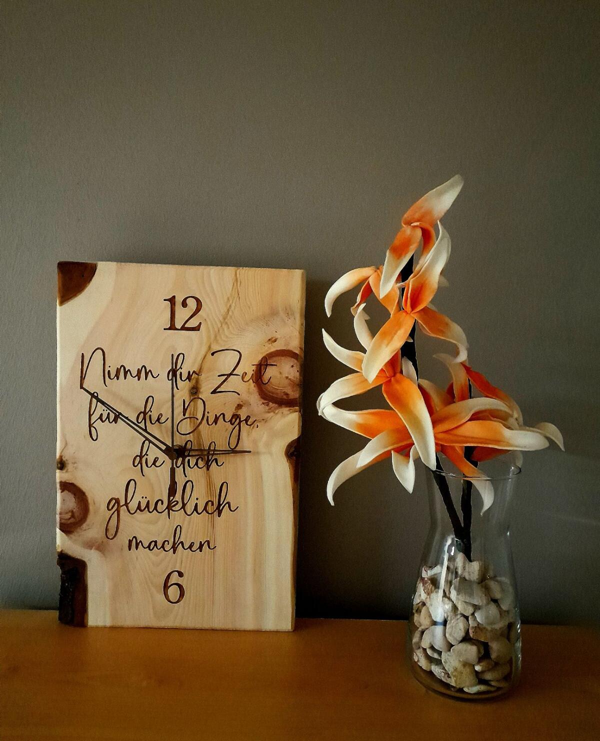 Verkaufe meine handgefertigte Wanduhr aus echtem Zirbenholz. Die Uhr trägt den schönen Spruch 'Nimm dir Zeit für die Dinge die dich glücklich machen' und ist ein echter Hingucker an der Wand. • Aus natürlichem Zirbenholz gefertigt • Mit Holzzeiger im rustikalen Stil • Inspirierender Spruch als Dekoelement • Unikat mit individueller Holzmaserung • Funktionsfähiges Uhrwerk Das Zirbenholz verleiht jedem Raum eine gemütliche, natürliche Atmosphäre. Bei Fragen melde dich gerne.