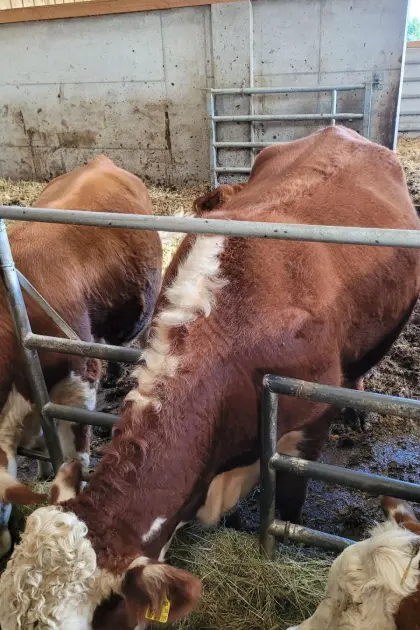 3 reinrassige Bio-Hereford-Zuchttiere zu verkaufen, geb: 12/2024, genetisch hornlos, sehr ruhig und gutmütig, 3 reinrassige Bio-Hereford-Kälbinen, 2-jährig, geb: 12/