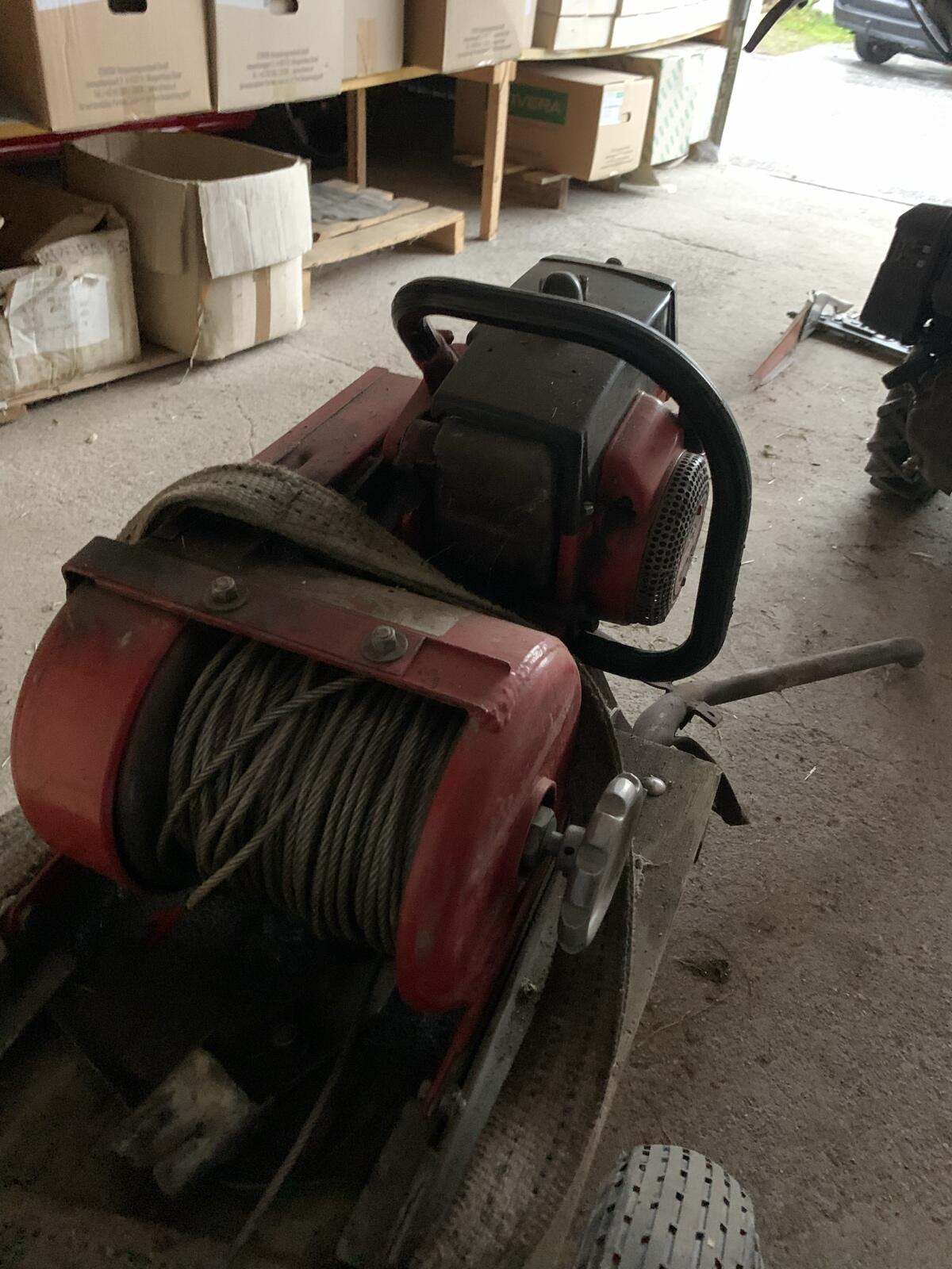 Hilfsseilwinde wurde verwendet zum Seilziehen von der Traktorseilwinde. Kann auch als Schlittenwinde verwendet werden. Hondamotor springt gleich an und Seilwinde fun