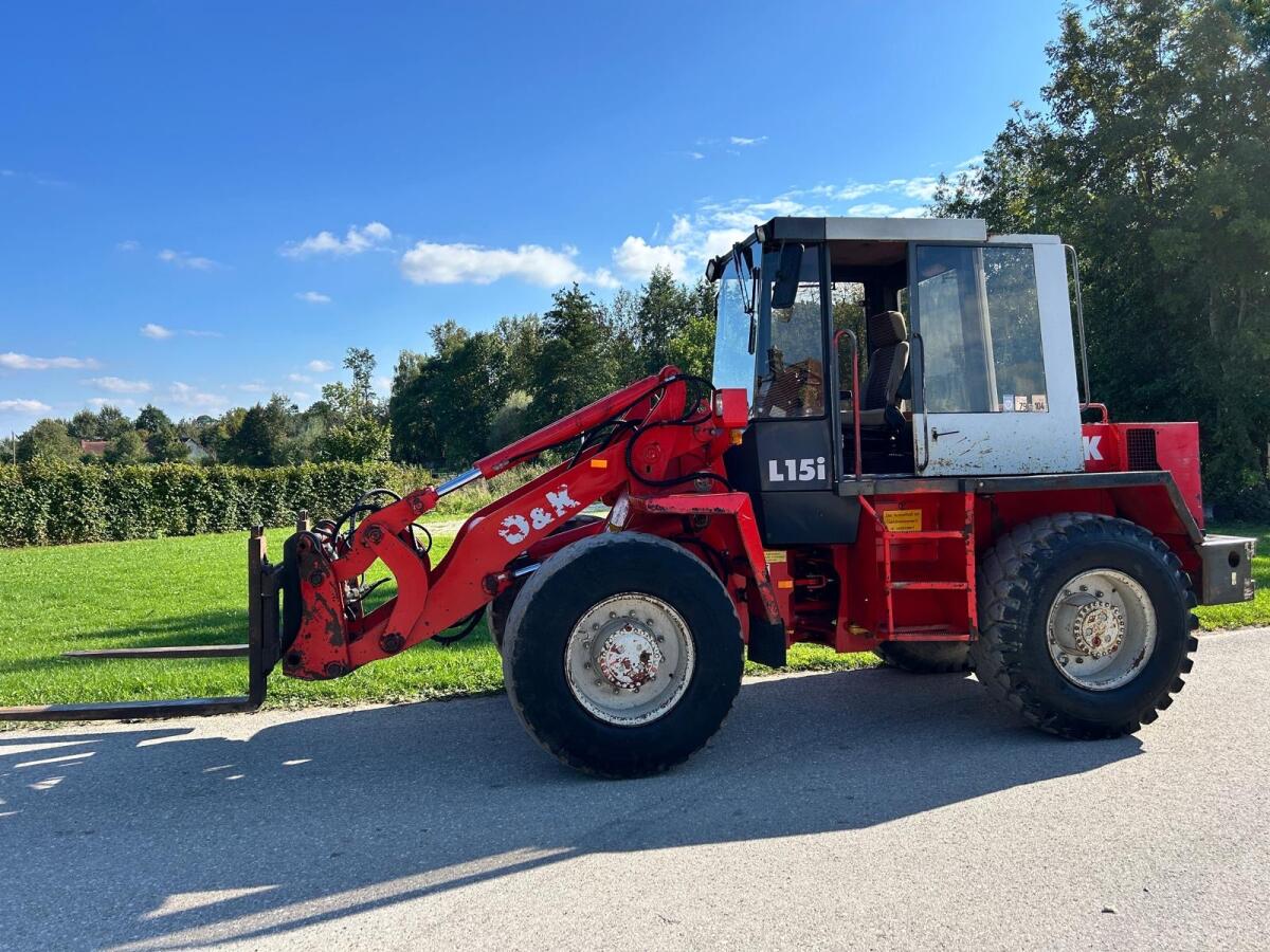 Verkaufe einen O&K L15i Radlader mit 74 kW und 12.600 Bstd., inkl. Palettengabel mit Parallelführung. Die Maschine bietet eine Hubkraft von rund 5 t, läuft zuverläss