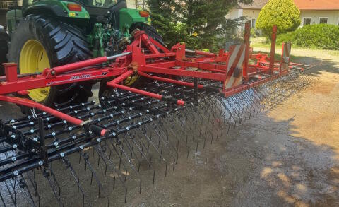 12 m Agrifarm Striegel zu verkaufen. Der Striegel wurde vor rund 30 ha mit neuen Zinken bestückt. Die Bolzen, auf denen die Pendelelemente montiert sind, wurden nach