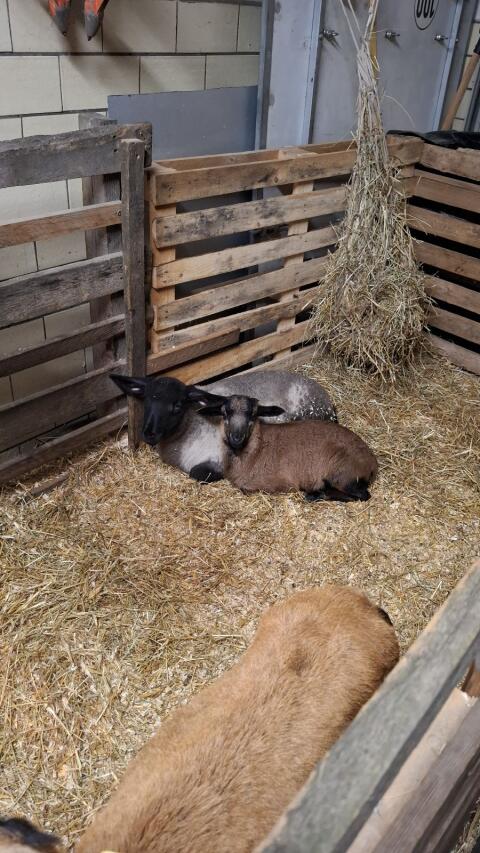 Verkaufen ein älteres Coburger Fuchsschaf (ca. 6 Jahre) mit einem Coburger Merino Kreuzungslamm (4 Wochen). Das Mutterschaf ist vom Allgemeinzustand in Ordnung, einz