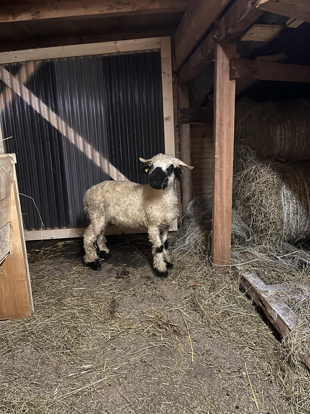 Hallo! Ich heiße Louis und bin ein 3 Monate altes Schwarznasenschaf und möchte im Frühling bei meiner Mama ausziehen. Meine Eltern sind reinrassige Walliser und auch