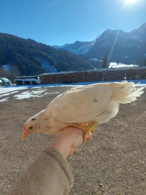 Wir vergeben unseren Hahn aus Naturbrut vom August 2025. Er ist mit großem Auslauf aufgewachsen und umgeimpft. Er ist ein Mischling, vermutlich mit Sperber-Anteil. W
