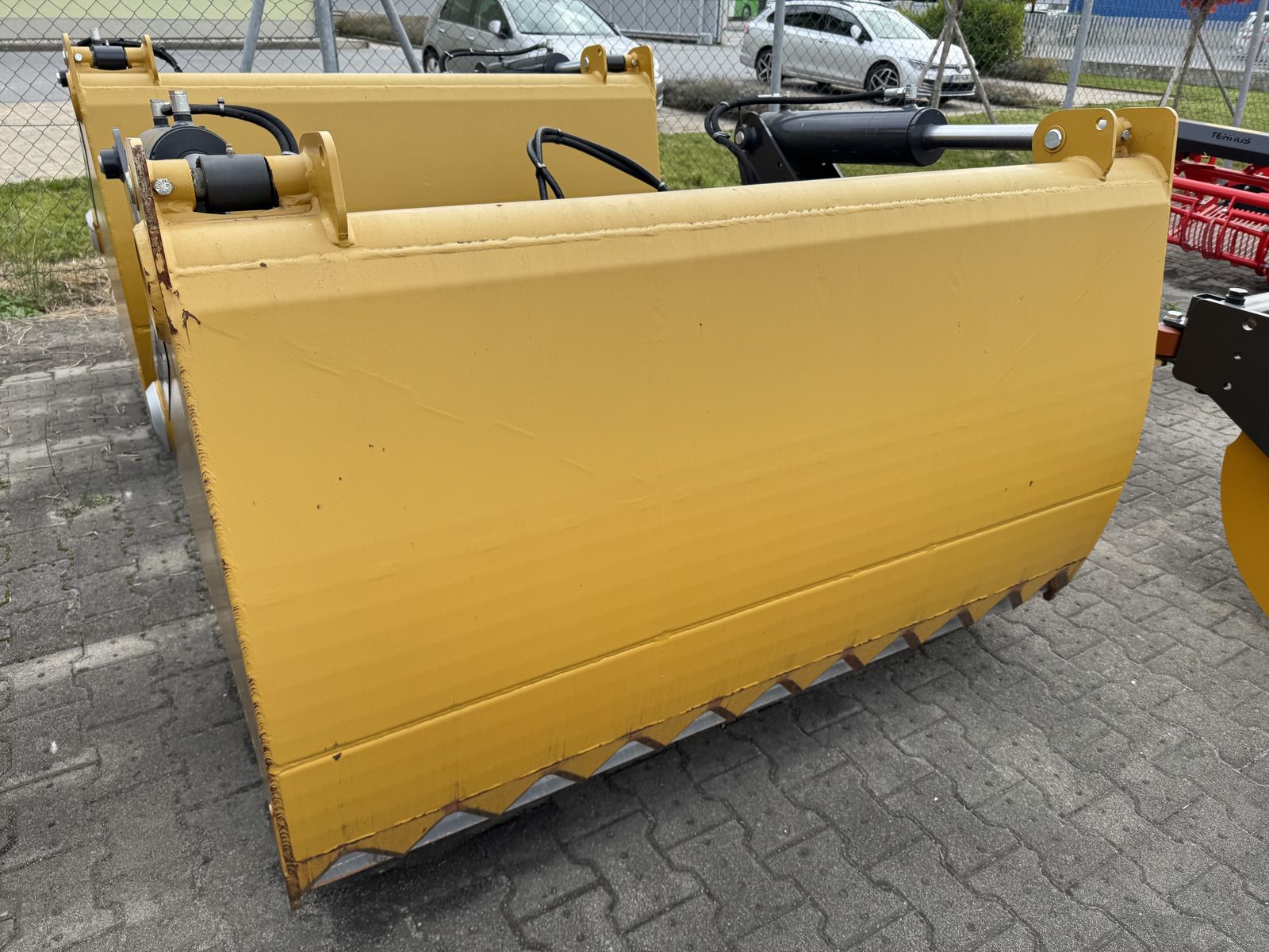 Siloschneidschaufel mit geschlossenem BodenEuroaufnahme 1, 69 m breit0, 80 m hoch0, 78 m tiefVolumen ca. 1, 05 cbmGewicht ca. 750 kg Oprema za krmljenje Reza