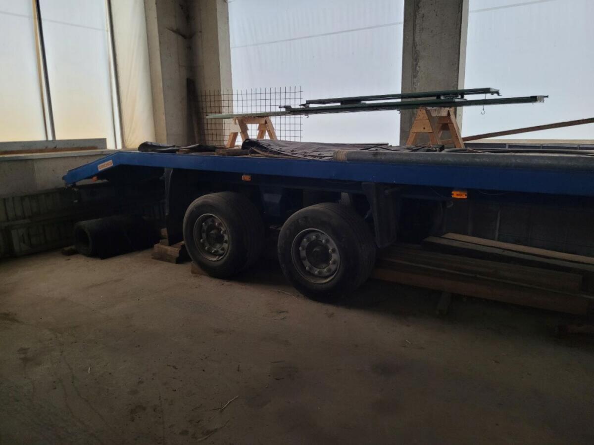 2-Achs Jumbo Anhänger, druckluftgebremst mit ALB-Regler, luftgefedert und 1 Paar Rampen. Vor 2 Jahren wurden die Räder, Siebdruckplatten und 1 Luftbalg erneuert. Lad
