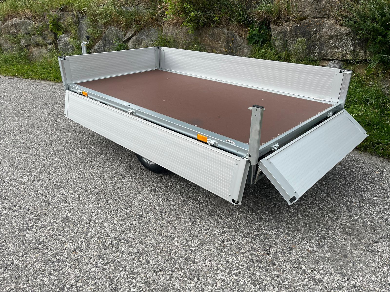 Bordwände abnehmbar (also Plateauanhänger verwendbar)
