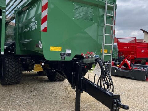 Bereifung (v): 710/50R26.5, Zustand-Bereifung (v): 100, Zustand-Bereifung (h): 100, Geschwindigkeit: 40, Leergewicht: 8620, Länge: 930, Höhe: 305, Lenkachse ________ Brantner TA 24073/2 Power Tube 2 Lagermaschine Neu Baujahr 2025 Eigengewicht 8.620kg zul Gesamtgewicht: 24.000kg Stützlast: 4.000 kg Ladevolumen: ca. 37m³ Gesamtlänge: ca. 9,3m Muldengröße innen: 7.300mm x 2.180mm/2.280mm Hubzylinder: 2 Stufendurchmesser Hubzyl.: 75/90/105/120/140mm Zylinder Hub: 3.000mm Zusstattung: + Walzprofilierte Stahlaufsatzwände 800 mm f. Silage (seitlich abklappbar) aus einem Stück (ohne Mittelsteher), inkl. Sichtgitter über gesamte Breite vorne + Zusätzliche Hydraulikleitung für Kippwerk für schnelleres Absenken + Bereifung 710/50 R 26.5 neu, Achsabstand 1600/1800 mm, Gesamtbreite über 2750 mm, mit Parkwarntafeln Serienausstattung Fahrgestell Rechteck-Rahmen Geschlossener Doppel-C-Pressprofilrahmen, sehr verwindungssteif, höchste Tragfähigkeit bei geringem Eigengewicht Lenkachse Lenkachse hydraulisch arretierbar, mit BPW Achsen, Rohr 150 mm, Bremse 410x180 mm Zugrohr Gefedertes Zugrohr aus Doppel-C-Pressprofil mit Bolzen verstellbar, Flanschzugöse für Kugelkupplung K 80 für 4 to Stützlast Federung Luftfederung mit automatischer Absenkung beim Abkippvorgang, inkl. pneumatischer ALB-Regler, automatische Niveauregulierung, ausgezeichnete Laufruhe, Zweiblattlenker für gute Standsicherheit und Geländegängigkeit Mulde Konische Mulde, keine Schweißnaht im Muldenboden (Foliennahtverschmelzung), massives Kastenprofil als Muldenabschlusskante, breite Rungen für große Seitenstabilität am hintern Muldenabschluss, Seitenwände fassförmig gekantet für optimale Stabilität, absolut glatte Innenwände, Sichtgitter in Muldenstirnwand mit Plexiglasabdeckung Muldenrückwand Hydraulische Öffnung mit doppeltwirkenden Zylindern, Gestänge nachstellbar, mechanisch verriegelt, garantiert korndicht, Kartoffelschieber mit Hebel Kipplagerung Extra starke, weit auseinander liegende Kugelkipplagerung mit konischer Pfanne für Standsicherheit beim Abkippen Schieber Kartoffelschieber mit leichtgängigem Verstellhebel Abstützung Hydraulischer Stützfuß doppeltwirkend mit Sperrblock Elektrik 12 Volt Licht- und Blinkanlage, Umriss- und Seitenmarkierungsleuchten, Stecker und Kabel 7-polig, Steckdose hinten Lackierung Beschichtung für hochwertigen Korrosionsschutz (LKW-Qualität), 2 K Acryllack- Spritzlackierung für UV Schutz und optimale Optik, Fahrgestellrahmen in automatischer Durchlaufanlage granulatgestrahlt, Hohlräume beschichtet oder mit hochwertigem Hohlraumschutz versiegelt, Aufbau HB-Grün, Unterbau Schwarz