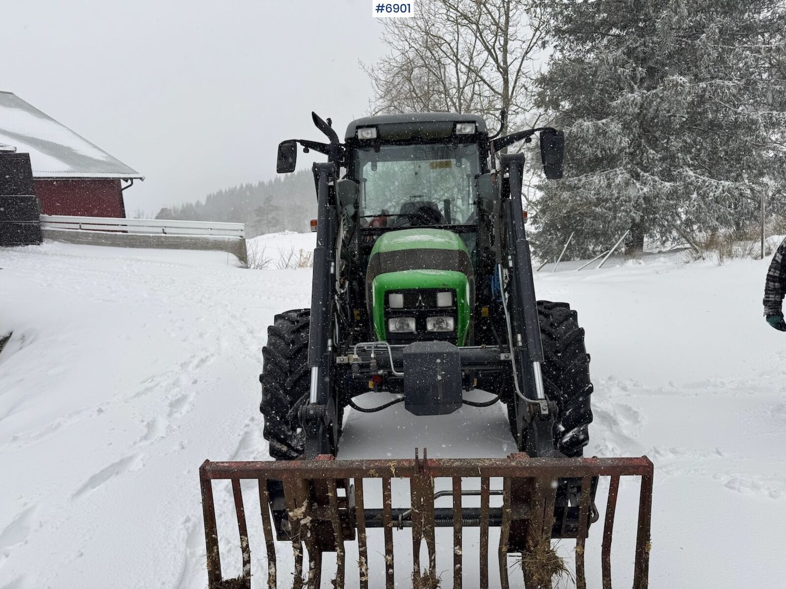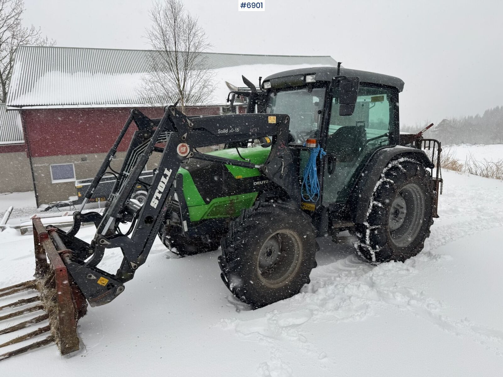 == Mer informasjon (NO) == mascus_category: tractors Please provide reference number upon request: 6901 See en.landbrukssalg.no/6901 for more images Specifications 40 km/h Curb weight: 3325 kg 3 double hydraulic take-offs Front loader: Stoll Solid 30-16 1 double hydraulic outlet on loader Tire size front: 360/70 R20 Tire size rear: 420/70 R30 Chains at the back Watch video Description Deutz Fahr 5080 D Ecoiline with front loader and low hours It comes with chains on the back New battery and new clutch cable Service was done this summer Slight damage to one of the rear screens Winch and silo tail are not included Delivery is arranged